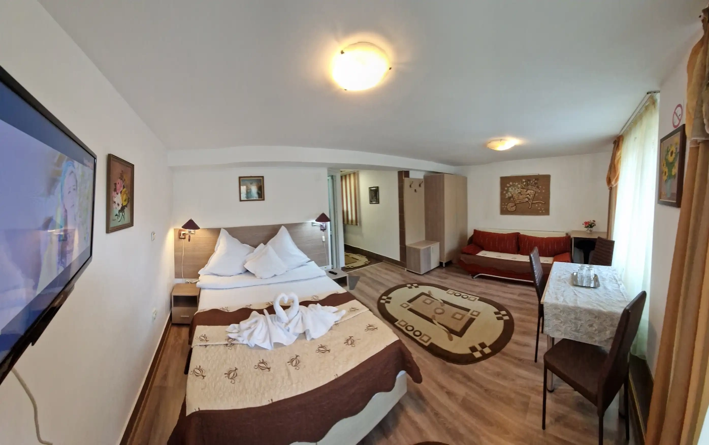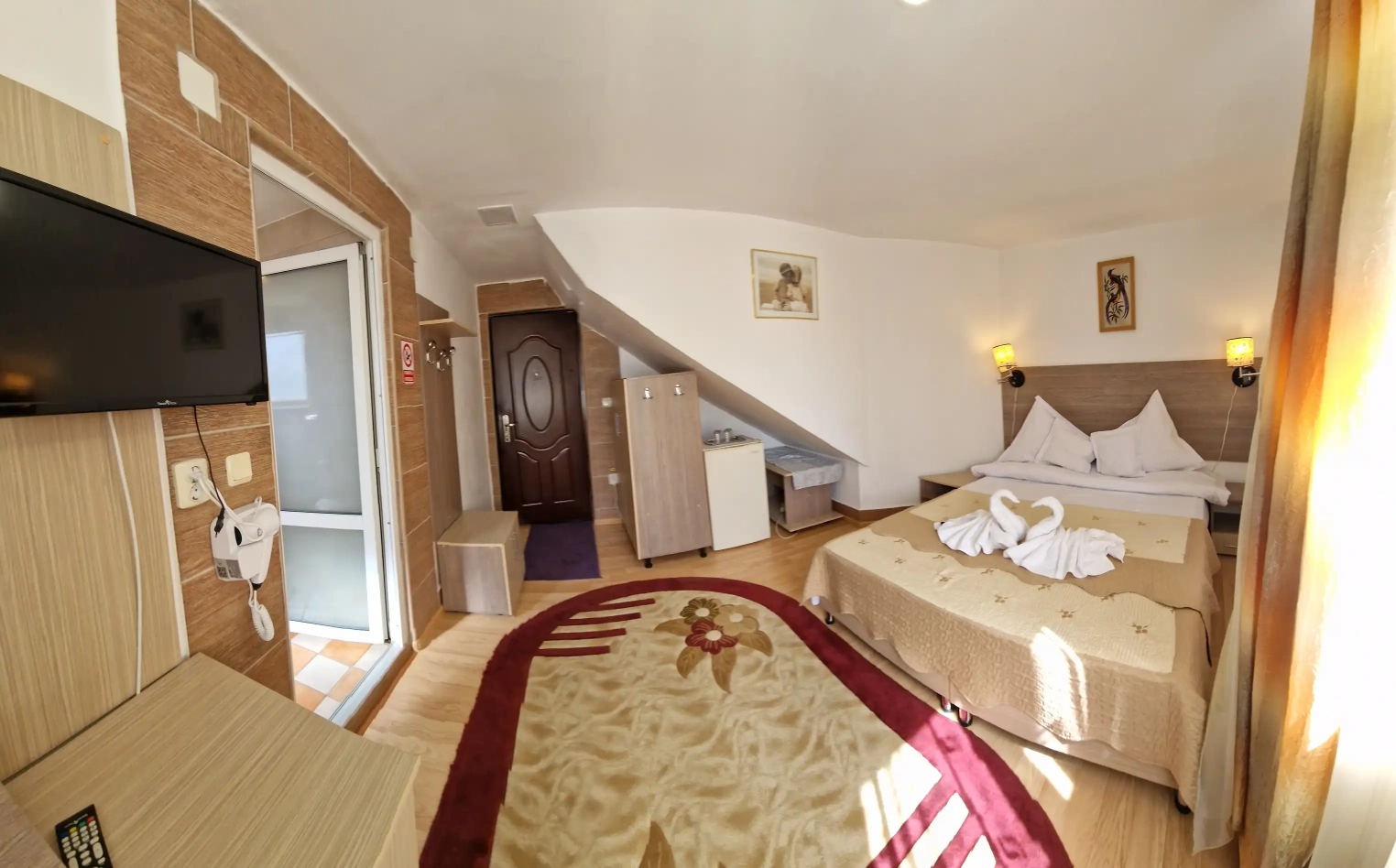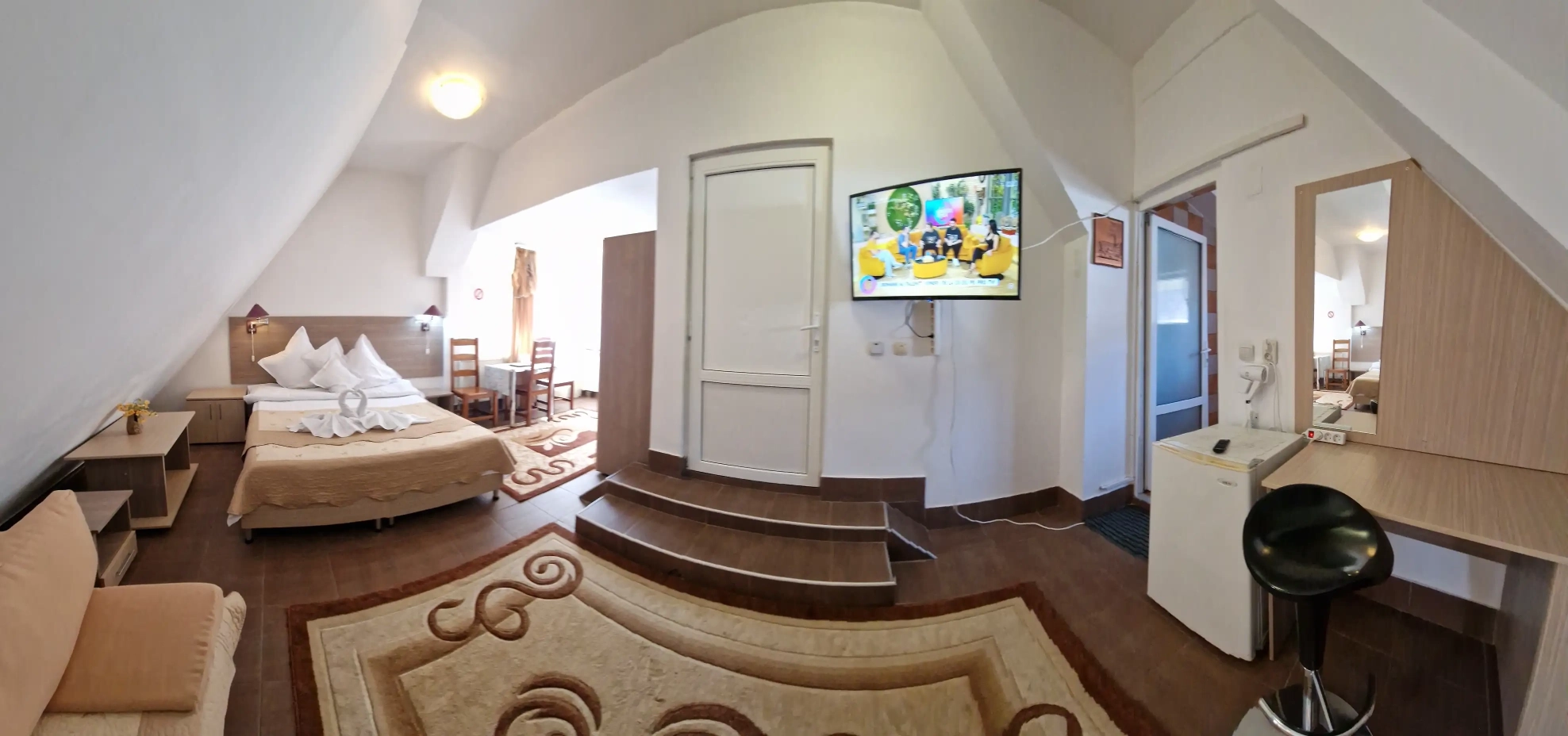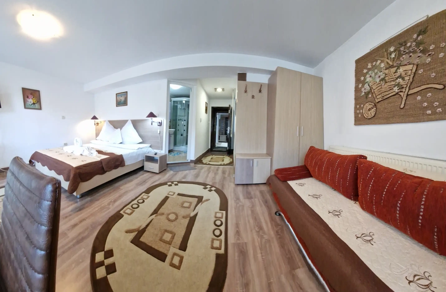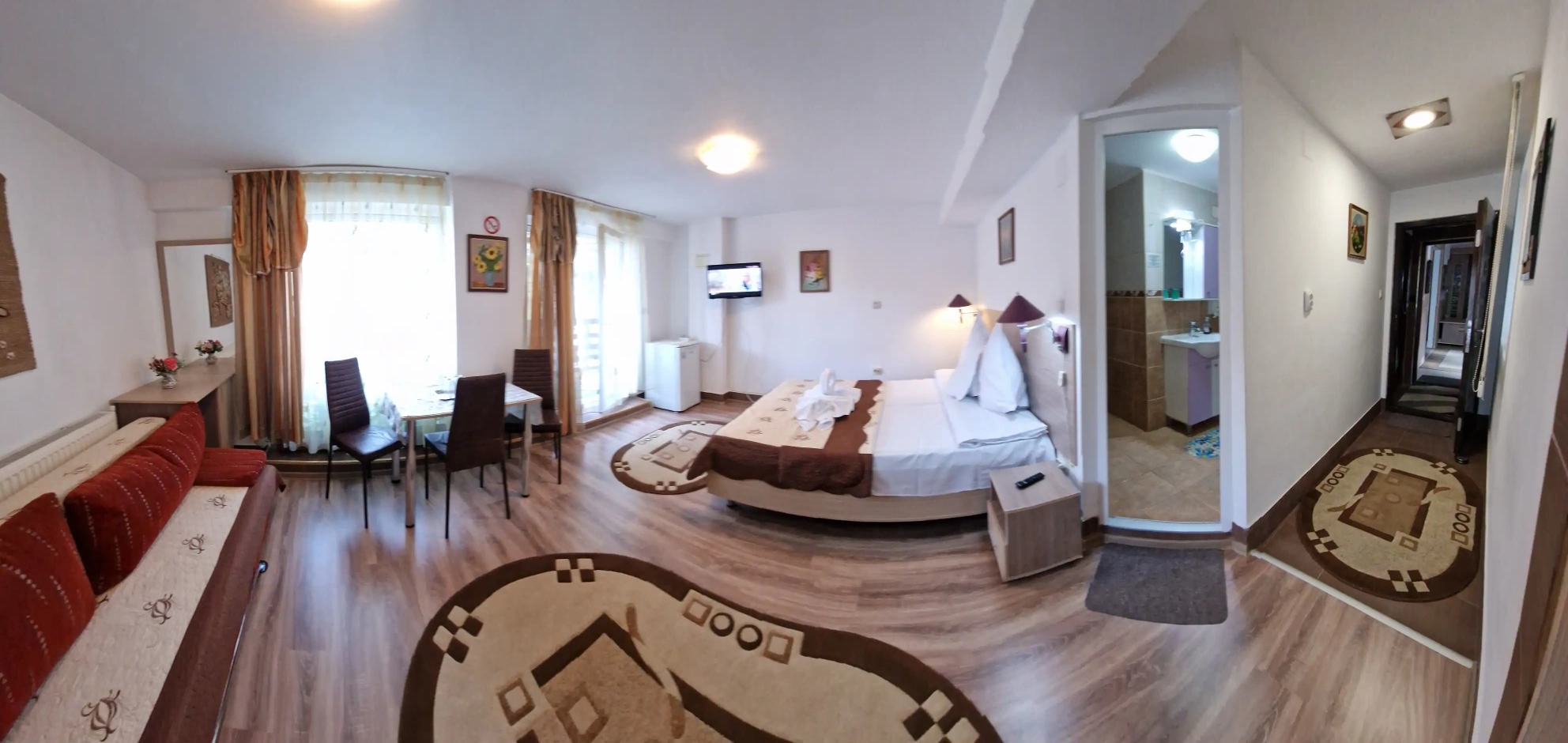 centrul orașului, iar în 7 minute la pârtia Clăbucet. Pensiunea